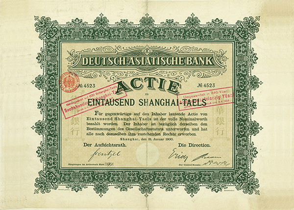 Jacob. S. H. Stern co-founds Deutsch Asiatische Bank (now Deutsche Bank Asia)